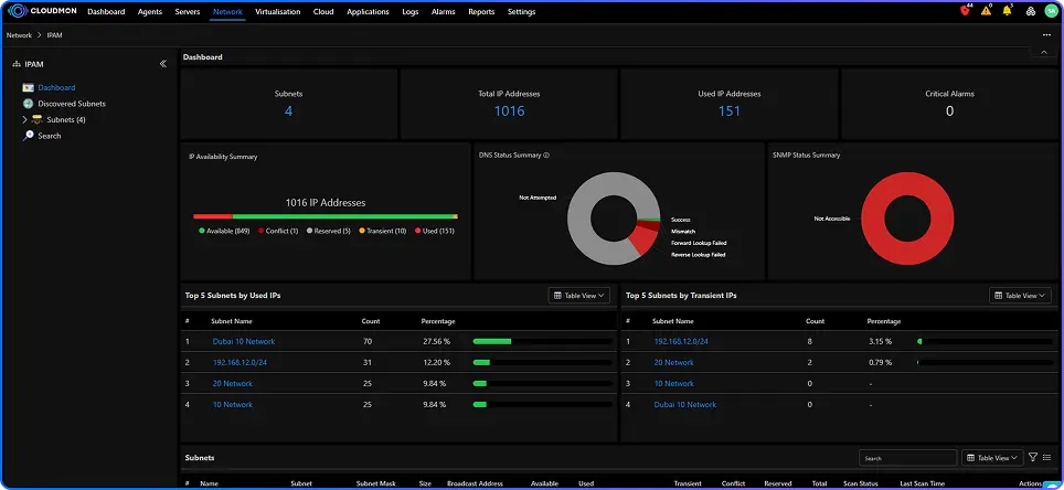 Automates the discovery and tracking of the entire IP space to eliminate manual spreadsheet errors and prevent address conflicts.